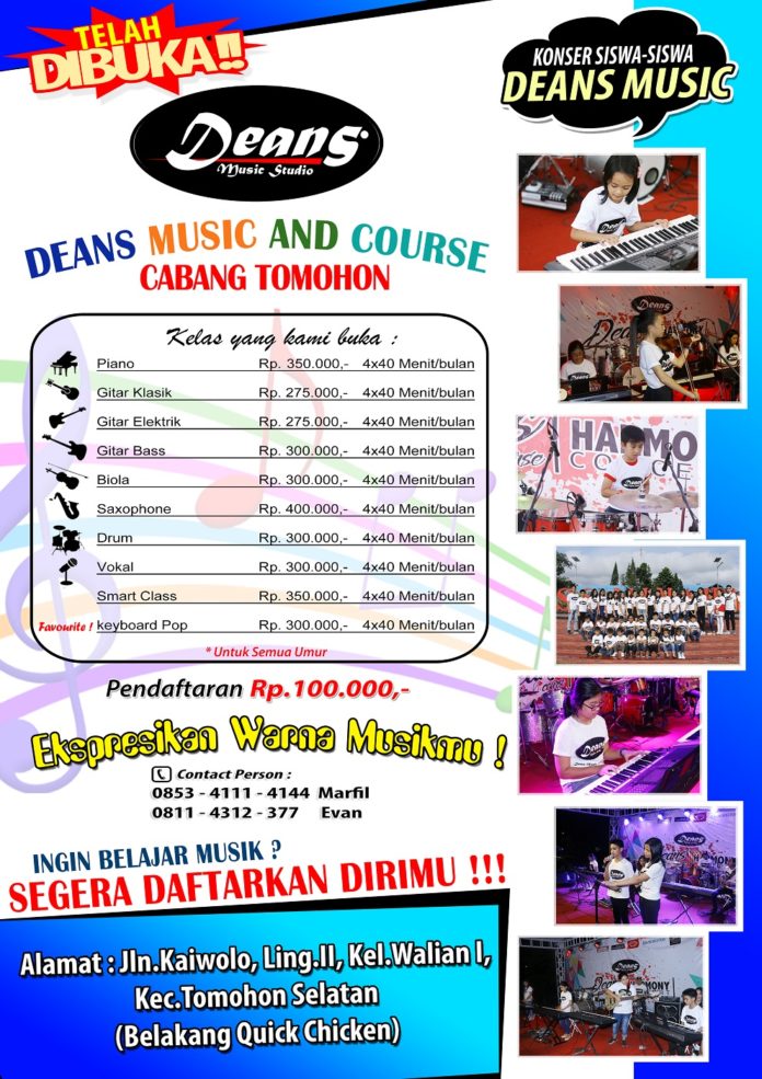 Ayo segera bergabung bersama Deans Music & Course Cabang Tomohon•